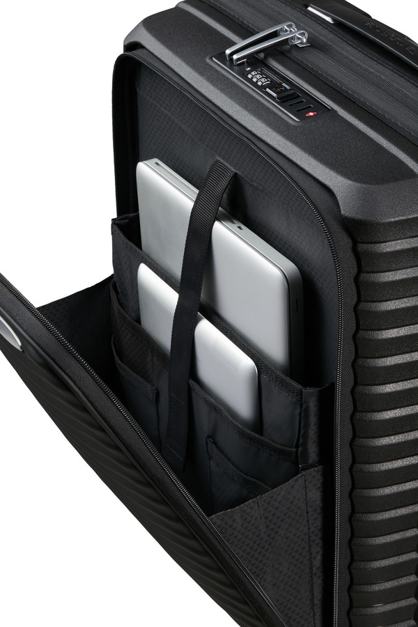 ΠΕΡΙΓΡΑΦΗ Με τη βαλίτσα Upscape επιλέγετε την άνεση. Απολαύστε ξέγνοιαστα ταξίδια χάρη στο πολύ μικρό βάρος της, τους τροχούς ανάρτησης που απορροφούν τους κραδασμούς, καθώς και την αφαιρούμενη και πλενόμενη εσωτερική της επένδυση. Η πρακτική δυνατότητα επέκτασης και η εντυπωσιακή ασημένια επένδυση της θα προσθέσουν ευκολία και ποιότητα στα ταξίδια σας!